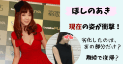 元グラドル、ほしのあきさんは現在どうしているのか。「奇跡の40代」あるいは「劣化した!」と話題になった近影画像や今の何しているのか(仕事)、離婚して復帰するとウワサされる理由や、芸能界から「消えた理由」などまとめています。